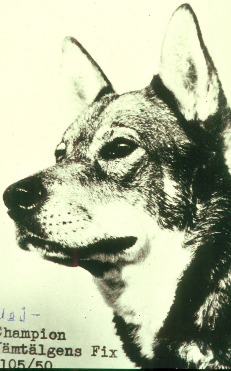 Het probleem was dat in tegenstelling van de overige spitshonden, de neusbrug vierkant en niet spits toelopend moest zijn. Iets wat in toenemende mate voorkwam, ook bij hem. Dat draagt zo nadrukkelijk bij aan het typische uiterlijk van de Jämthund en hij liet mij oude foto's zien.