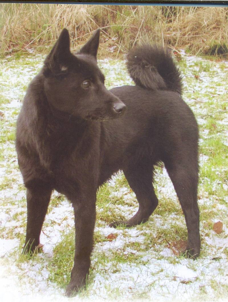 Zij hadden korte halzen, kleine oren en een spitse snuit. De vacht was stug en wat lang. De kleur was effen zwart, vaal-, donker- of lichter grijs. Zij werden bijna nooit als erfhond gebruikt" zo verhaalt de dominee. "Zij zijn het liefst in gezelschap van de jager. De meeste van deze zwarte honden jaagden zowel op vogels als op wild, alleen de allerbesten onder hen jaagden uitsluitend op grootwild. Goede jagers konden aan het gedrag van de hond zien of zij een spoor van een beer, 'n eland of een lynx volgden".
